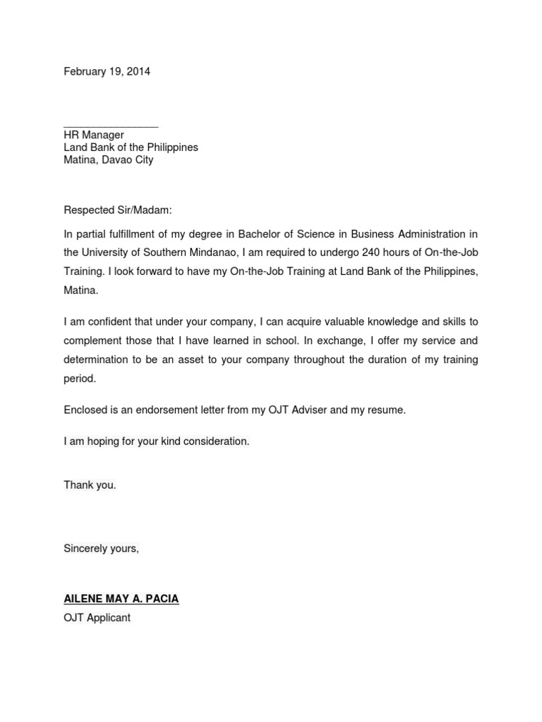 Review a sample letter to send with a job application, plus more examples of letters of application for jobs, and what to include in your letter or email. A letter of application is really important when you are about to apply for a job vacancy or an internship. Example of an application letter refrence fresh example application. Create a job application letter through the help of the examples that you can download in this post. If you are applying for a travel visa, make sure to state a clear intention for your travel. I am writing to apply for the job of shop assistant in your store. A job application letter can impress a potential employer and set you apart from other applicants. Hidden job market encompasses all the opportunities filled in through employee referral programs, networking and speculative applications. Sample application letter for ojt. You can explain briefly the skills you have acquired from your experience. _, i am a graduating student taking up a two year( course) at (school) (address). Application letters to human resources. An ojt acknowledgement letter is basically a thank you letter to those that you worked with for the opportunity to receive on the job training.